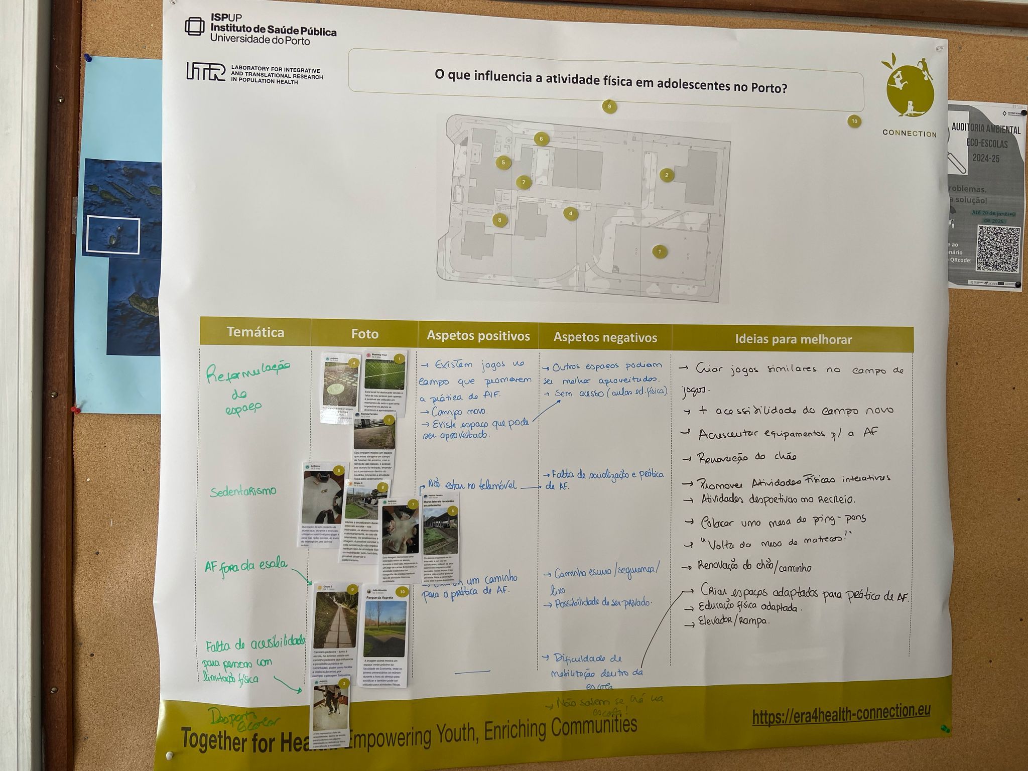 In Portugal, the CONNECTION Project sessions with the active participation of adolescents have already begun. Using participatory methodologies such as mapping and photovoice, students from schools in Porto and Valongo identified the main issues related to diet and physical activity among adolescents in the school context: